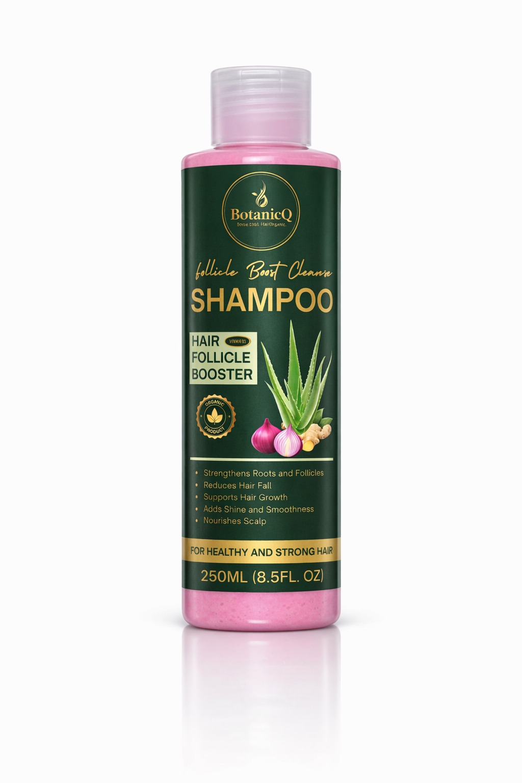 BotanicQ Follicle Boost Cleanser Shampoo is expertly formulated to gently cleanse the scalp while strengthening hair from the roots. Enriched with a powerful blend of botanical extracts including aloe vera, onion extract, and ginger root, this advanced formula helps reduce hair fall, nourish follicles, and support healthy hair growth.