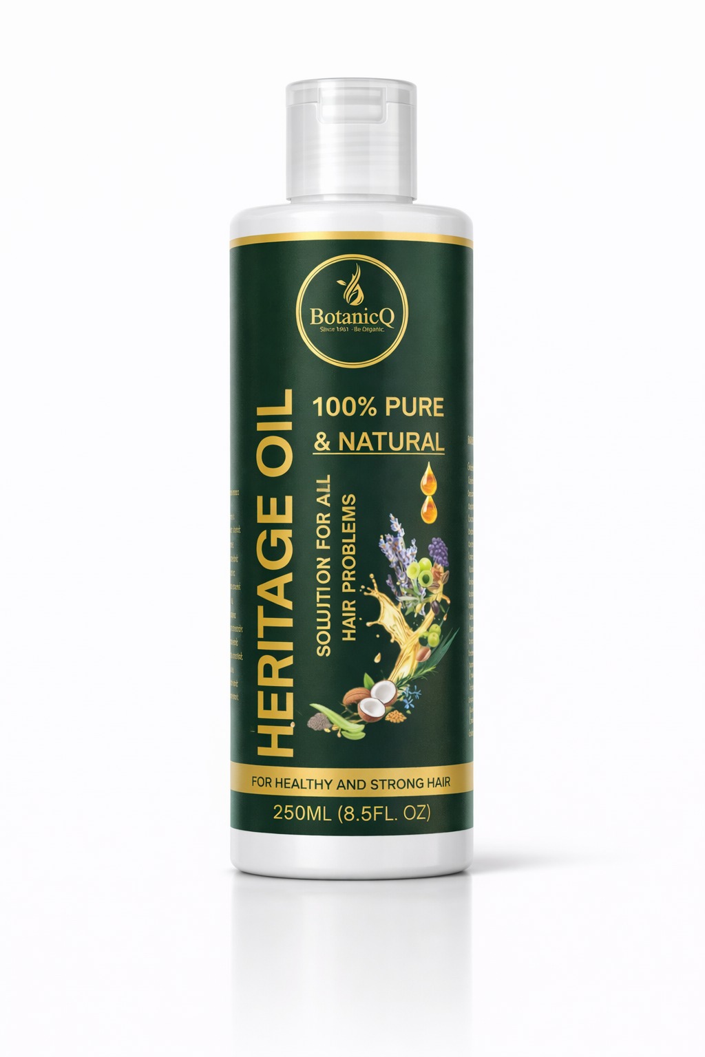 Suitable for all hair types, this nutrient-rich oil deeply hydrates, restores scalp balance, and improves overall hair texture. With regular use, your hair appears thicker, smoother, shinier, and visibly healthier. Say goodbye to weak roots, flakes, and thinning hair, and embrace stronger, fuller-looking hair naturally with BotanicQ Heritage Oil.